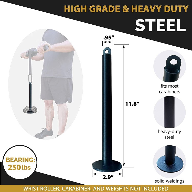 The 1″ inch loading pin is designed to be used with standard weight plates. If you have dumbbells’ with free weights, you can use the weights with the loading pin to increase resistance when using the wrist roller.
